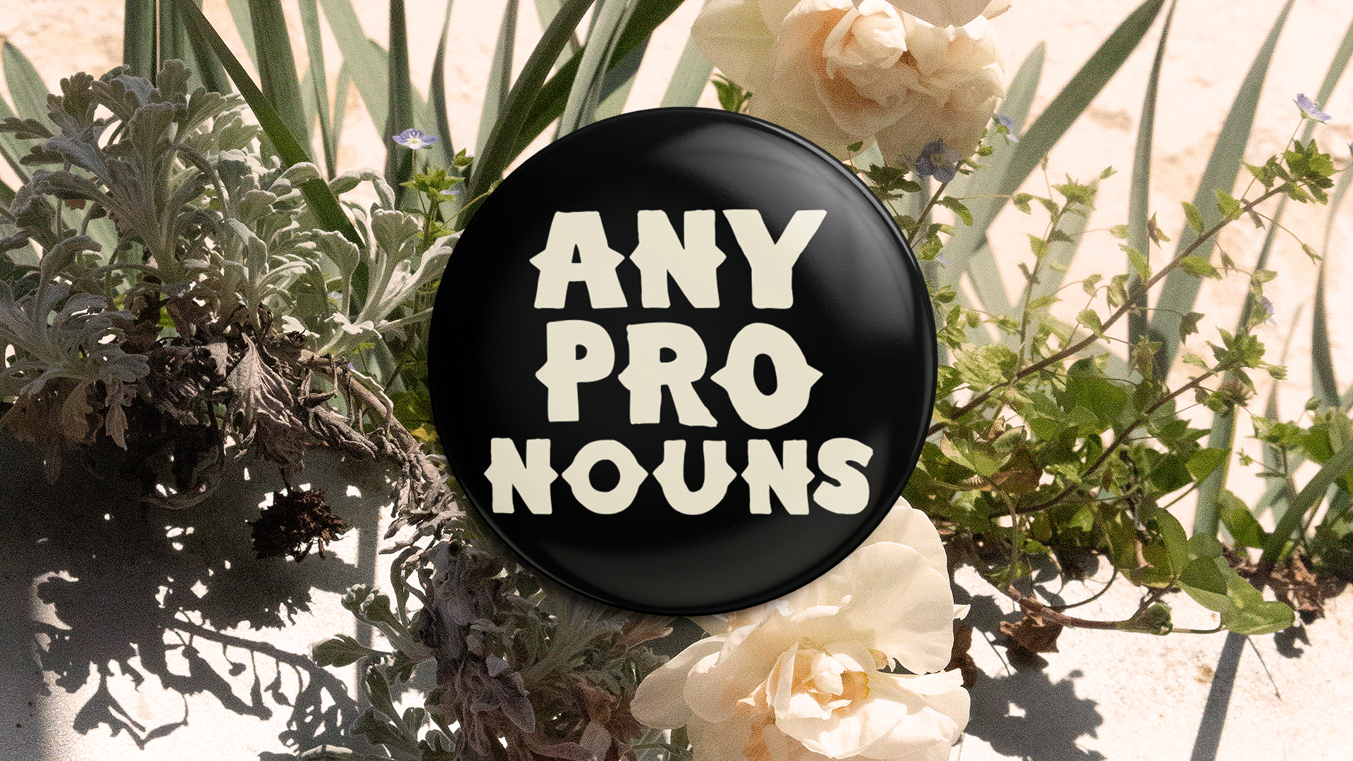 Buttons displaying pronoun identities for the Tactics Portland shop and Northwest Open 2024. Custom typography for hand-cut and hand-pressed buttons in my home.